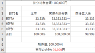 【Excel】エクセルで按分の計算方法(端数処理:比例按分:値引き:合わないなど)