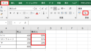 【Excel】エクセルで割合を出す関数名・計算式は?一括での求め方・出し方も(構成比や何対何の比率)