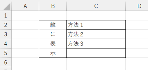 これで、結合せずに縦方向の文字列を中央に揃えることができました。