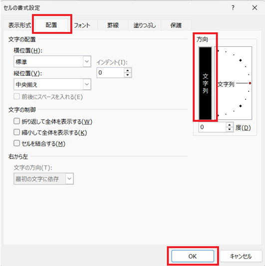 ・方法3:縦書きにする(省スペースで見やすい)セル範囲を選択→右クリック → セルの書式設定→「配置」タブで 文字の方向 → 縦書き を選択→「OK」で確定