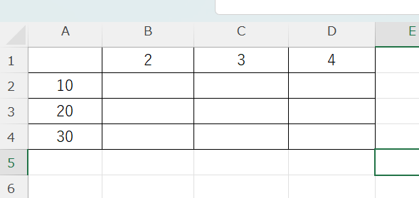 たとえば、縦方向と横方向にそれぞれ異なる値が並んだ掛け算表を作るような場面で非常に役立ちます。