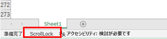 ScrollLockがオンの状態では、矢印キーでセルを移動する代わりに、シート全体が上下左右にスクロールする動作に切り替わります