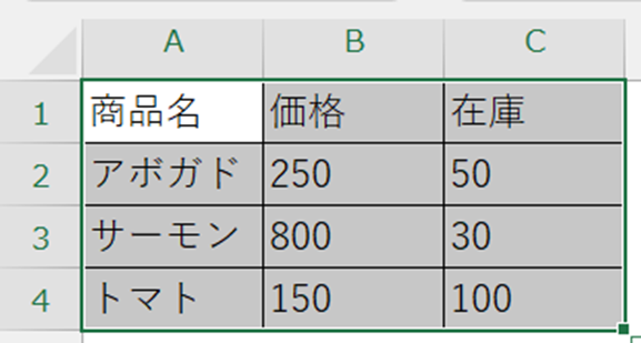例えば、以下のような格子状の罫線が引かれた表があるとしましょう。