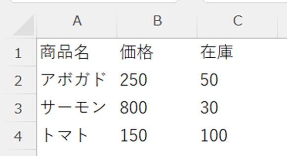 まず、罫線を削除したいセル範囲(例としてA1からC4)をドラッグして選択しましょう。