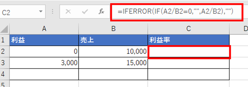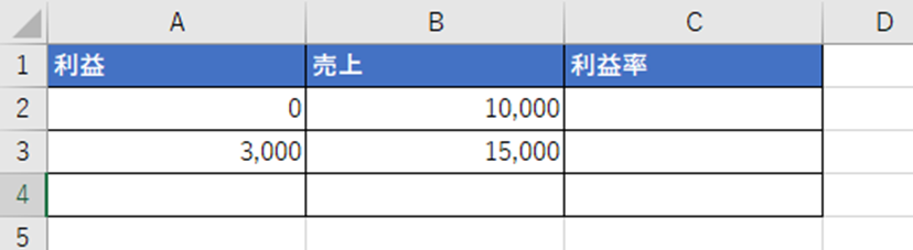 例えば、利益率を計算する数式を考えてみましょう。