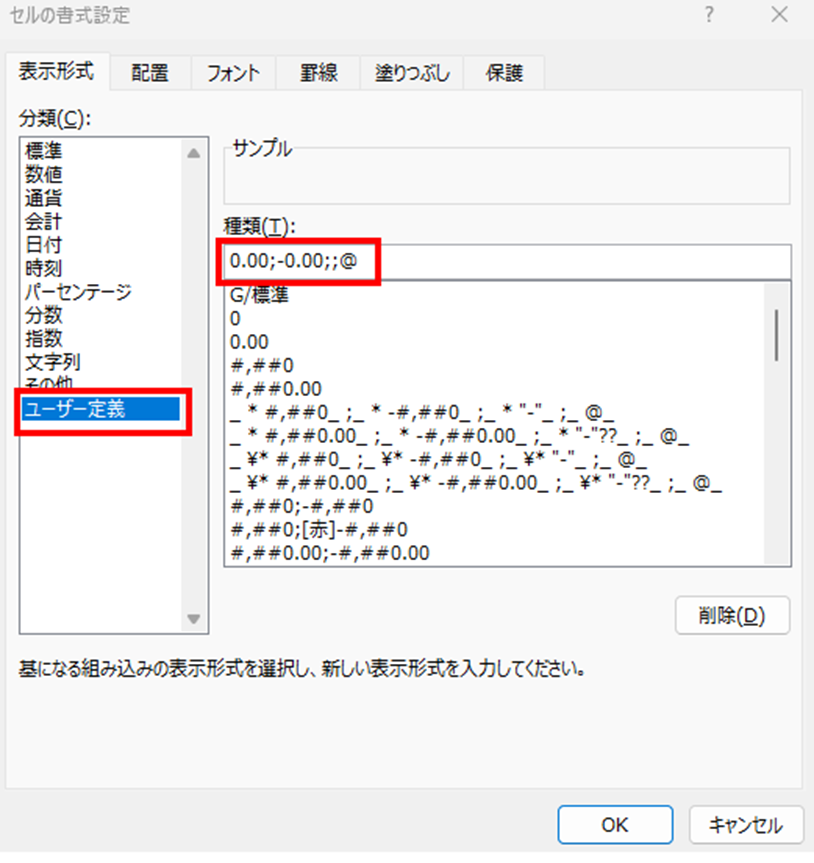 「分類」から「ユーザー定義」を選択しましょう。