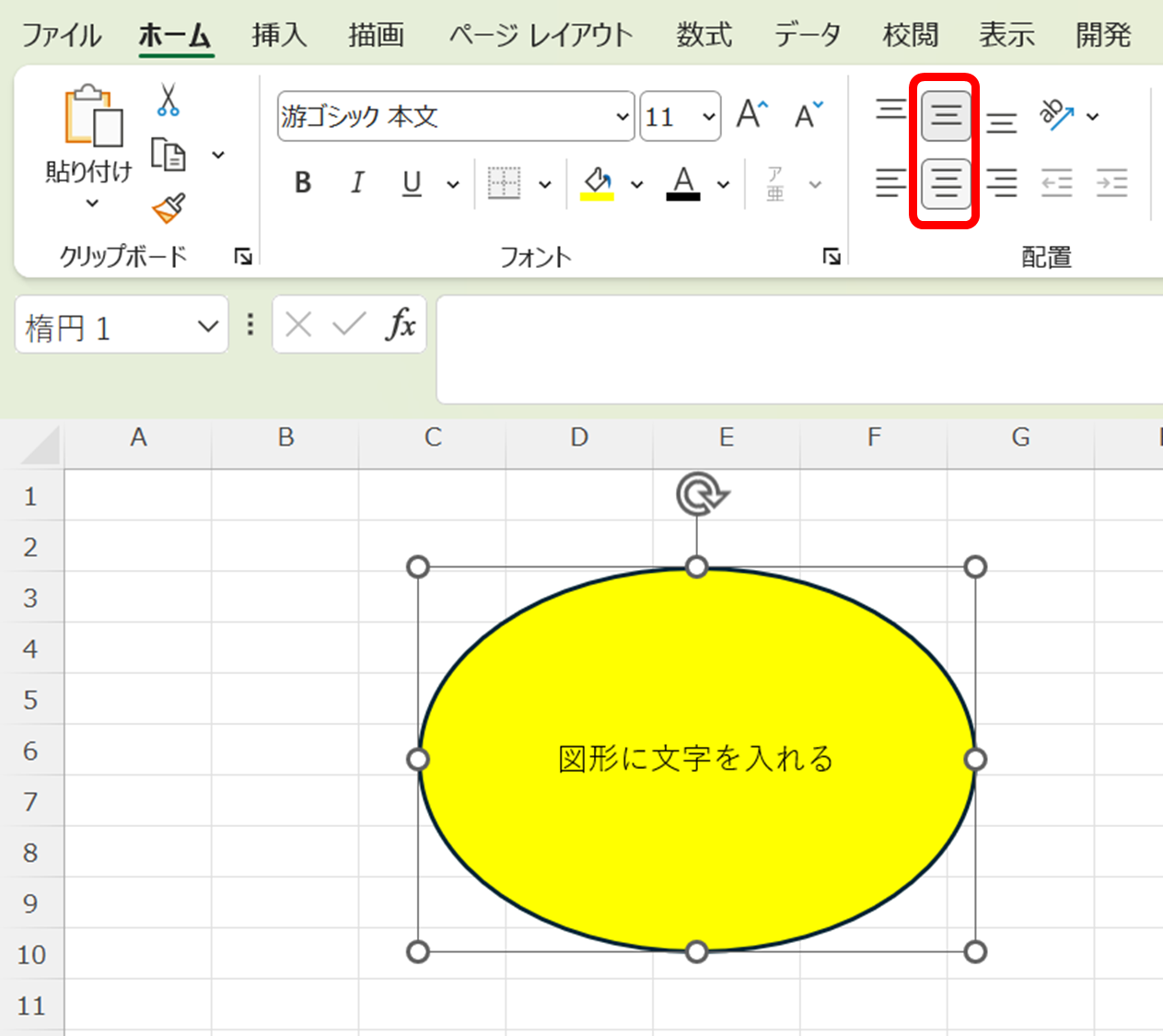 図形の中に文字を入力する最も基本的な方法を確認しましょう。
