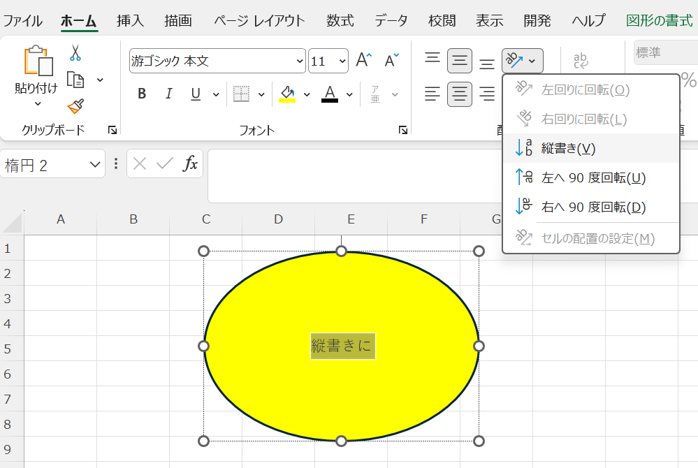 エクセルの図形内の文字を縦書きにする方法