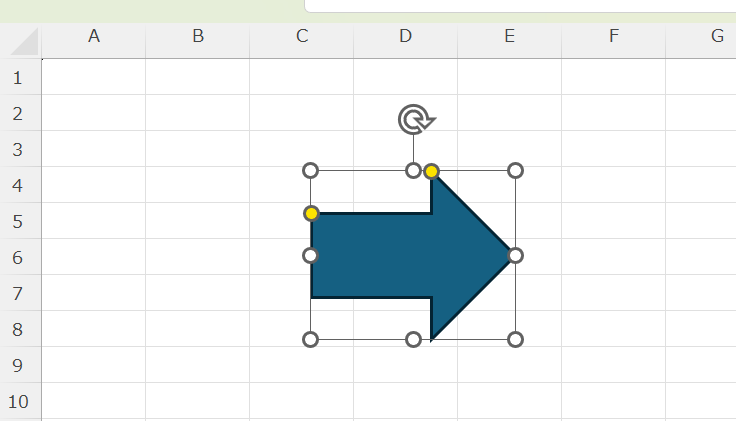 矢印・ブロック矢印はフロー図や手順の説明など、方向や流れを示す場面で使います。ブロック矢印は黄色いハンドルで矢印の頭の大きさを調整できます。