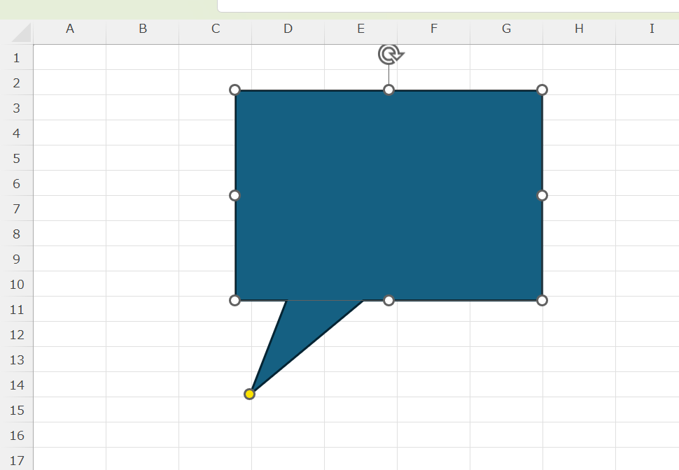 吹き出しはコメントや補足説明を図形として表現したい場合に使います。吹き出しの尻尾部分を黄色いハンドルでドラッグして向きや位置を調整できます。