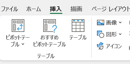 Excel 2016以前のバージョンではアイコンの挿入機能自体が搭載されていないため、「挿入」タブに「アイコン」ボタンが表示されません。
