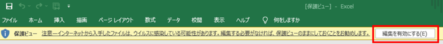 まず、保護ビューが表示されている場合は、画面上部の黄色いバーにある「編集を有効にする」ボタンをクリックします。