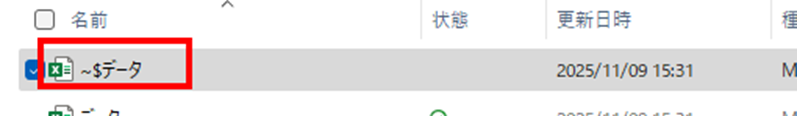 ファイルと同じフォルダ内に、「~$」で始まる隠しファイル(例:~$ファイル名.xlsx)が残っている場合は、これを削除してください。