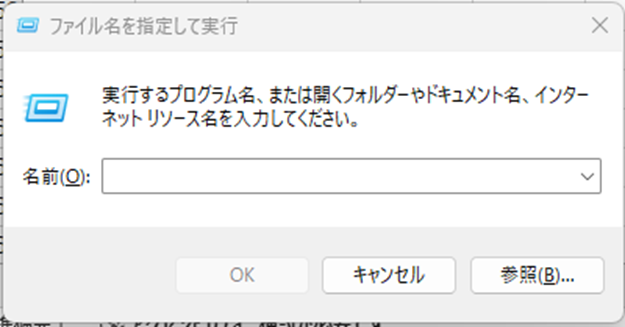WindowsキーとRキーを同時に押して「ファイル名を指定して実行」を開き、以下のコマンドを入力してEnterキーを押します。
