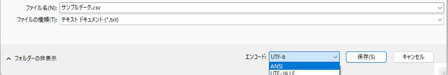 保存画面の下部にある「文字コード」を