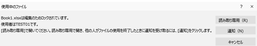 エクセルファイルを開こうとすると、「〇〇.xlsxは編集のためロックされています」「使用者は’ユーザー名’です」というメッセージが表示されることがあります。