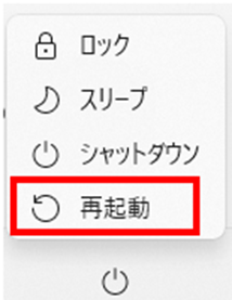 スタートメニューから「再起動」を選択し、パソコンを再起動してください。