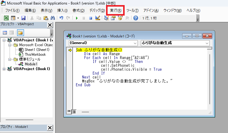 エクセルでふりがなを自動入力する方法3【VBAで自動生成する】