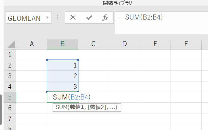 ここではB2からB4までの合計としています。