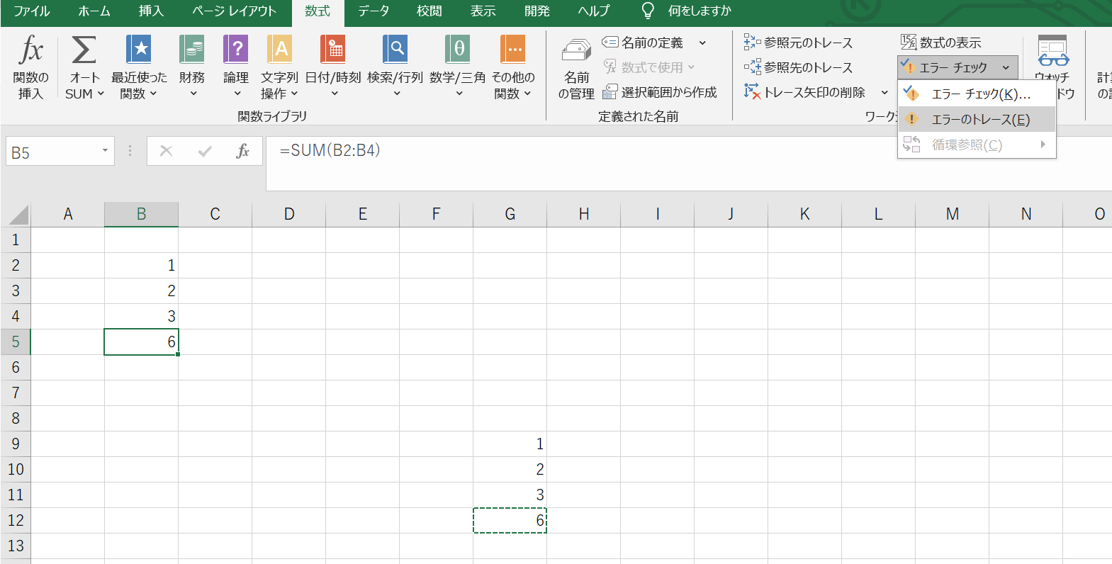 G12の循環参照エラー解消の上で、再度循環参照チェックにかけてみましょう。するともう1つの循環参照B5が特定できました。