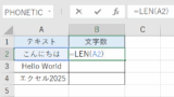 また、LEN関数とは、指定した文字列の文字数(Length/長さ)を返す関数です。