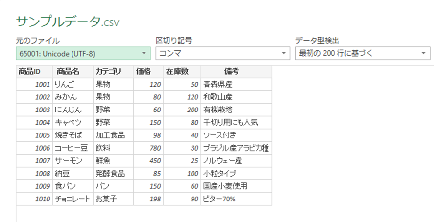 Power Queryを使用すると、文字コードの指定だけでなく、データの加工や整形も同時に行える高度なCSV取り込みが可能です。