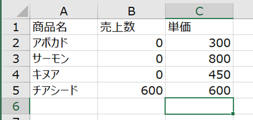 | アボカド | =B3 | 15 |