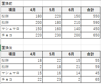 ただしこの方法では「10」「20」「100」など「0」を含む数値も置換対象になってしまう場合があります。