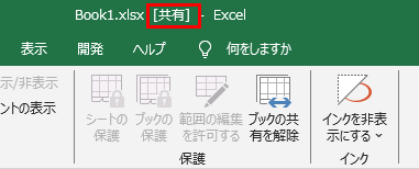 ファイル名の後ろに「共有」または「Shared」という表示がある場合、そのブックは共有状態です。