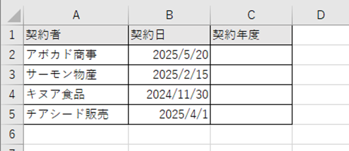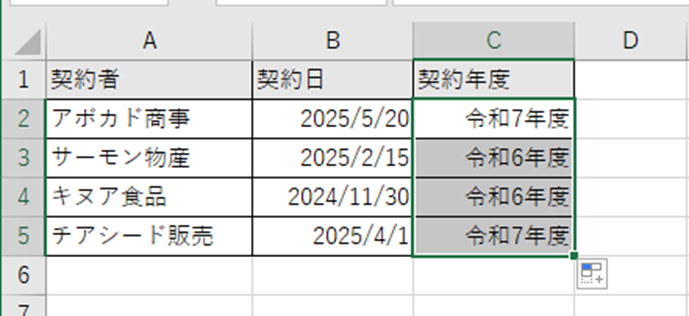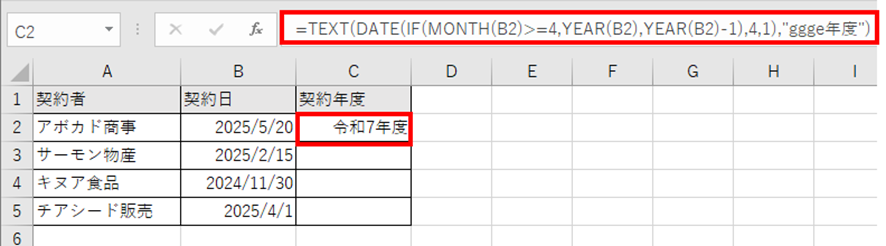 契約日から和暦の年度を表示したい場合を考えてみましょう。
