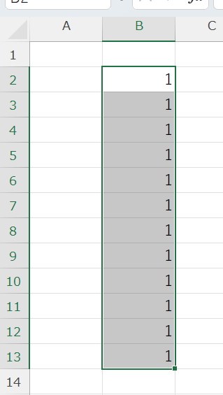 Ctrl+Dは選択範囲の一番上のセルの内容を下方向にコピーして貼り付けるショートカットです。複数行を選択してからCtrl+Dを押すと、最上行の内容が選択範囲全体に一括でコピーされます。