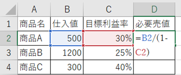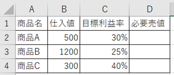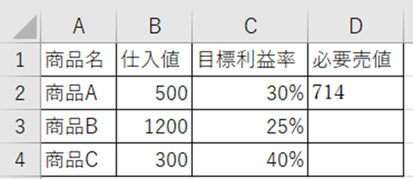 エクセルで利益の計算方法3【目標利益率から売値を逆算する方法】