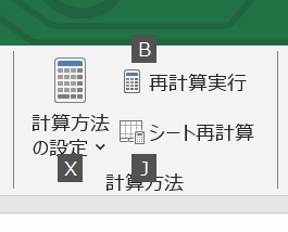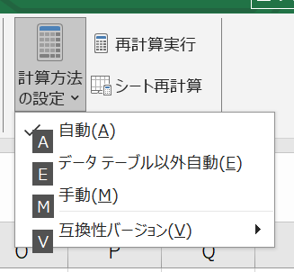 計算方法の切り替えは、Alt → M → X → Aまたは Alt → M → X → Mのショートカットキーを使えば、マウスを使わずに素早く変更できます。