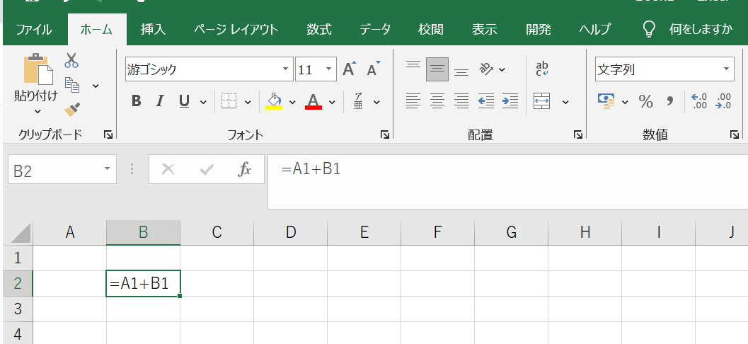 数式が計算されずに「=A1+B1」のように数式そのものが表示される場合は、セルの表示形式が「文字列」になっている可能性があります。