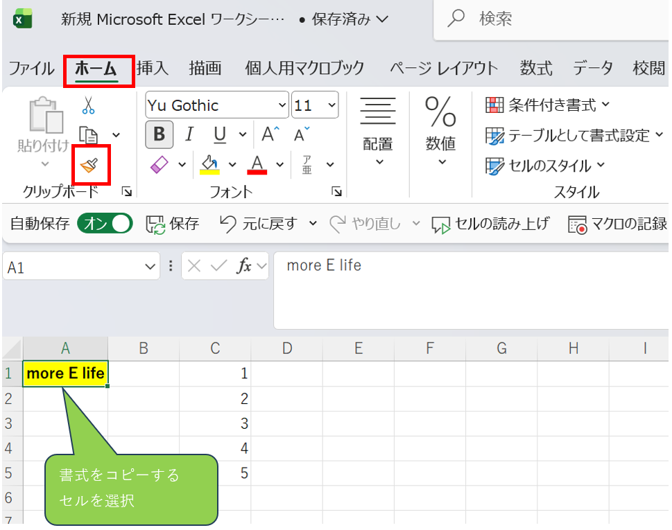 エクセルで書式のみコピーする方法1【書式のコピーボタンを使う基本操作】