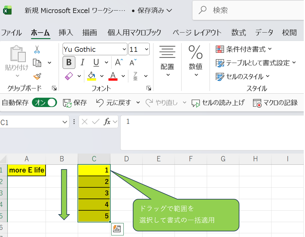 エクセルで書式ごとコピーして複数のセルに適用する方法