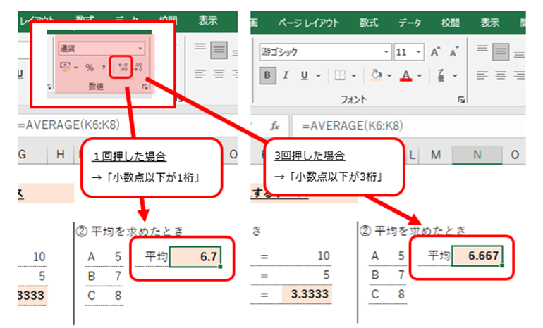 この方法を覚えると、ポチポチするだけで瞬時に小数点の桁数を調整することができます。