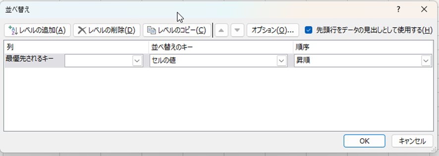 並び替えダイアログが表示されます。
