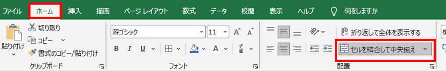 結合セルを解除するには、該当セルを選択して「ホーム」タブの「セルを結合して中央揃え」ボタンをクリックします。