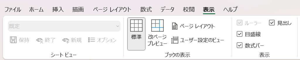 枠線の表示設定は、「表示」タブまたは「ページレイアウト」タブから確認・変更できます。