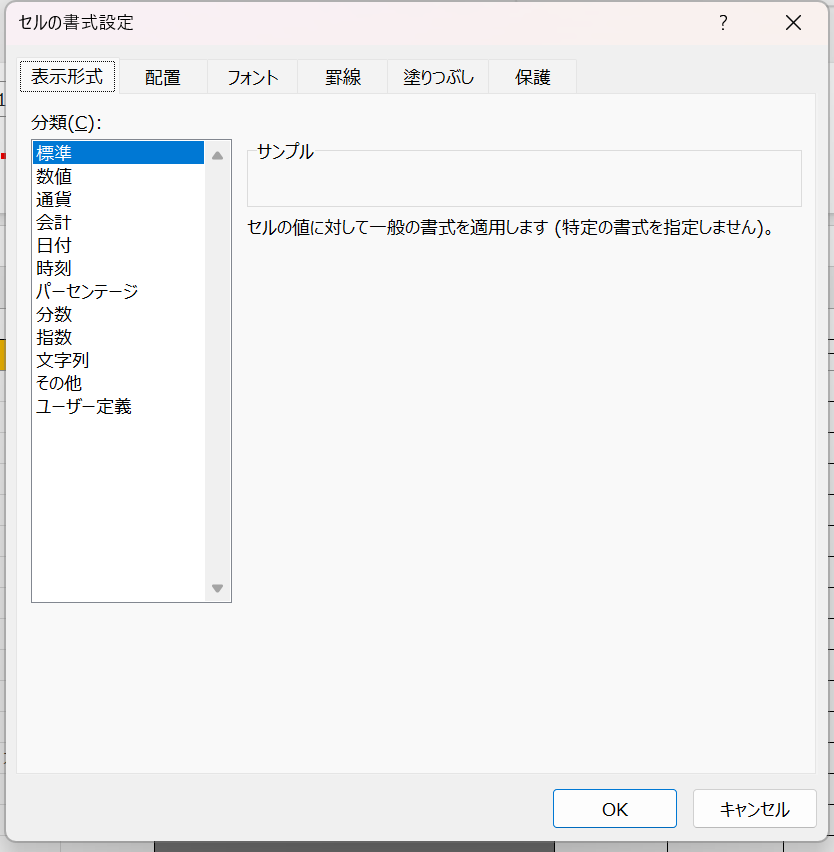 「塗りつぶし」タブをクリックして、「背景色」が「白」に設定されている場合は、「色なし」を選択して「OK」をクリックしましょう。