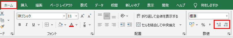 パーセント表示の小数点以下の桁数を調整したい場合は、「パーセントスタイル」ボタンの右にある「小数点以下の表示桁数を増やす」または「小数点以下の表示桁数を減らす」ボタンを使用します。