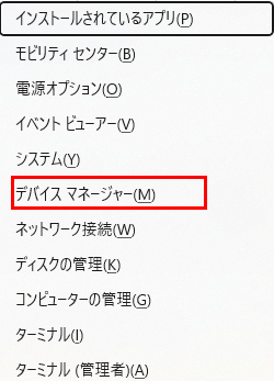 「デバイスマネージャー」を開きます(Windowsキー + Xを押して「デバイスマネージャー」を選択)。