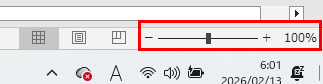 ・画面右下のズームスライダーで表示倍率を確認