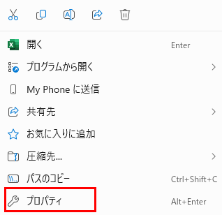 エクセルのショートカットアイコンを右クリックして「プロパティ」を選択しましょう。