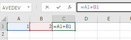 画面上部の数式バーに「=A1+B1」と表示されます。
