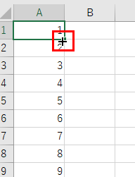 すると、カーソルが自動的にA1セルへ移動し、A1セルが選択された状態になります。