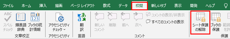 「シート保護の解除」ボタンが表示されている場合は、それをクリックしましょう。