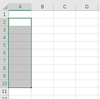 丸で囲む効果を適用したいセル範囲を選択します(例:A2からA10)。