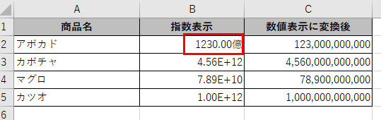 指数表示はあくまで「見た目」の問題であり、セル内の値そのものは正確に保持されているため、表示形式を変更するだけで元の数値として表示できます。